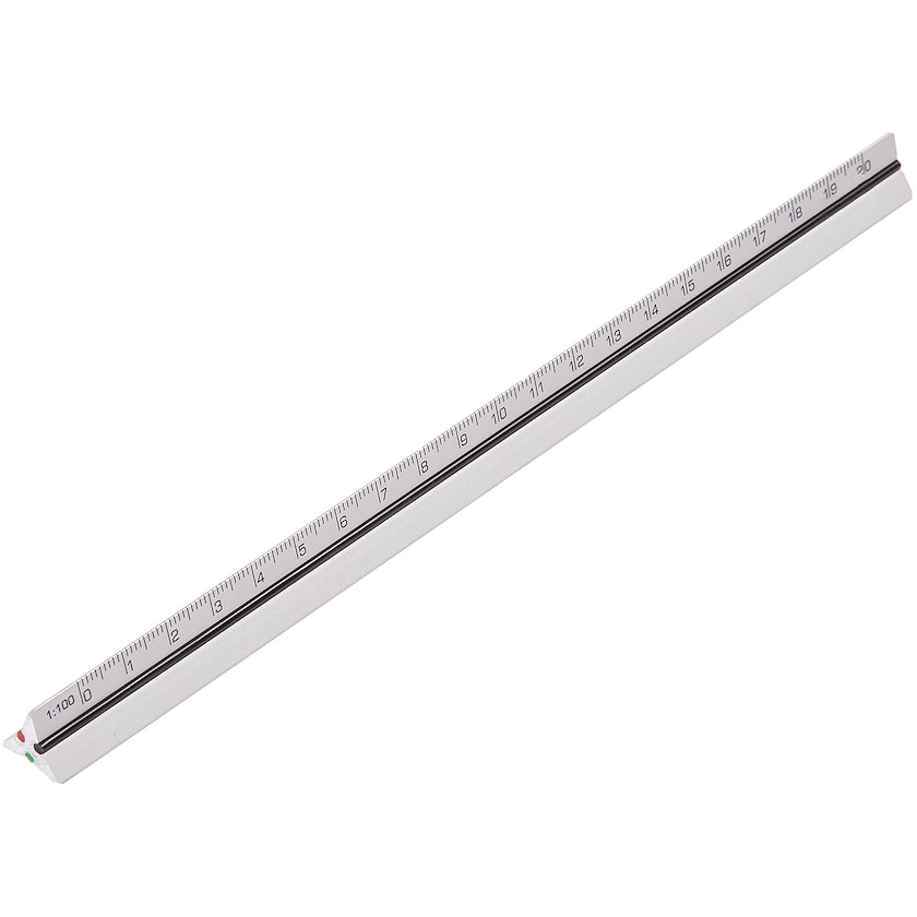 Règle à échelles en aluminium à usage professionnel. La règle est disponible avec cinq échelles suivant vos souhaits. Elle est pourvue de trois bandes en caoutchouc horizontales rouge, verte et noire respectivement, qui aident à retrouver la bonne échelle. L'image détaillée montre les échelles disponibles. Les échelles n°2 et 3 sont les plus populaires chez les architectes, tandis que pour les ingénieurs, c'est plutôt la n°4. Lors de la commande, il suffit d'indiquer quelles sont les trois échelles parmi les n°1-9 vous souhaitez, et quelles sont les 6 échelles que vous souhaitez retirer.