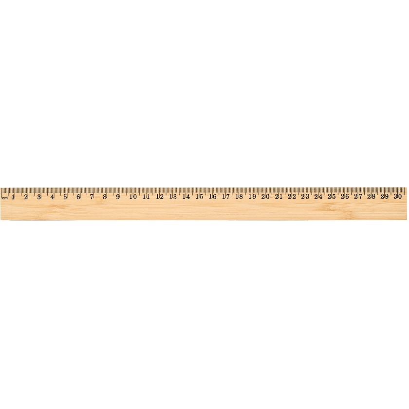 Règle de 30 cm en bambou. L'un des côtés mesure en centimètres, l'autre en pouces. La personnalisation est réalisée par gravure laser.