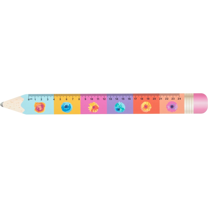 Règle de 24 cm en forme de stylo. L'intégralité de la face supérieure est personnalisable suivant vos souhaits. Téléchargez le template d'impression et créez votre règle unique ! La règle est en plastique souple.