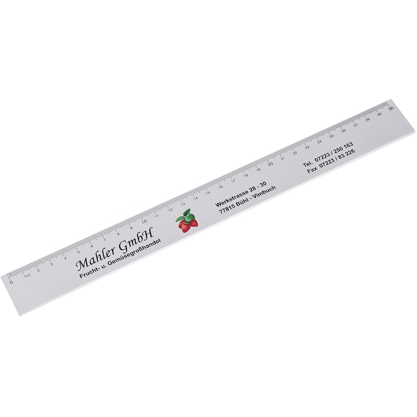 Règle en aluminium 30 cm de haute qualité. La règle est extra stable grâce à sa bande publicitaire à l'arrière. Commandez vos règles en aluminium personnalisées chez Axon Profil!