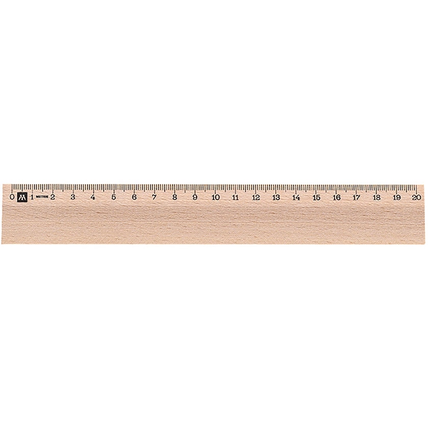 Règle en bois de 20 cm de la plus haute qualité. La règle est fabriquée dans le hêtre le plus fin et est parfaite pour un usage professionnel ou pour les écoles.
