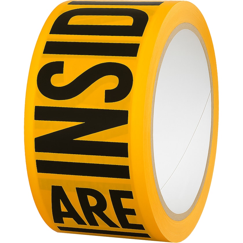 Ruban adhésif silencieux de haute qualité avec imprimés sur le dessous du ruban. Grâce au mécanisme d'impression Sandwich (impression depuis le dessous), l'imprimé est protégé de l'usure. Choisissez entre du ruban blanc ou transparent. Si vous souhaitez que le scotch soit d'une certaine couleur, nous pouvons imprimer tout le fond du ruban dans cette couleur. L'impression peut être réalisée en trois couleurs maximum.