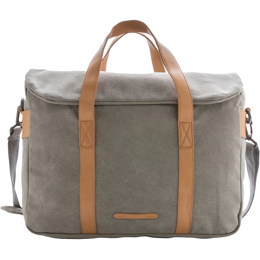 Sacoche pour ordinateur portable en toile résistante avec détails en cuir synthétique. La sacoche possède un compartiment matelassé qui convient à la plupart des ordinateurs portables jusqu'à 15,6 pouces. La sacoche est entièrement sans PVC.