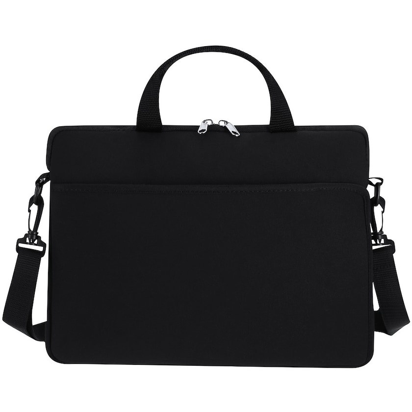 Sacoche d'ordinateur à coque souple. À l'intérieur, un compartiment pour ordinateur portable de 14 pouces est prévu. La bandoulière est amovible. Une attache trolley est prévue à l'arrière. Le matériau offre une excellente absorption des chocs.