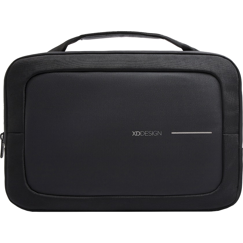 Pochette d'ordinateur moderne pour laptop de 16 pouces. Le tissu est fabriqué à partir de rPET, c'est-à-dire de bouteilles PET recyclées. La doublure est en polaire douce.