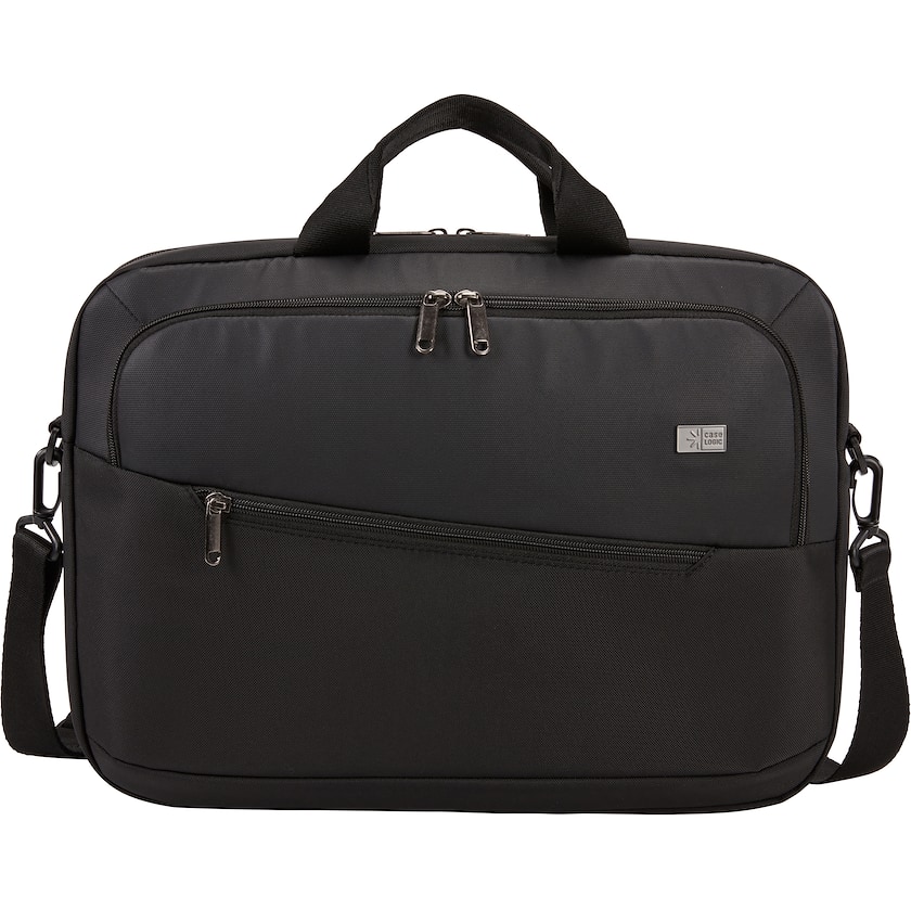 Sacoche d'ordinateur Case Logic pour ordinateur portable de 15,6 pouces. Elle possède un compartiment intérieur matelassé pour ordinateur portable jusqu'à 15,6 pouces, ainsi qu'une poche de rangement pour tablette jusqu'à 12 pouces. À l'avant se trouve une petite poche pour les petits objets.