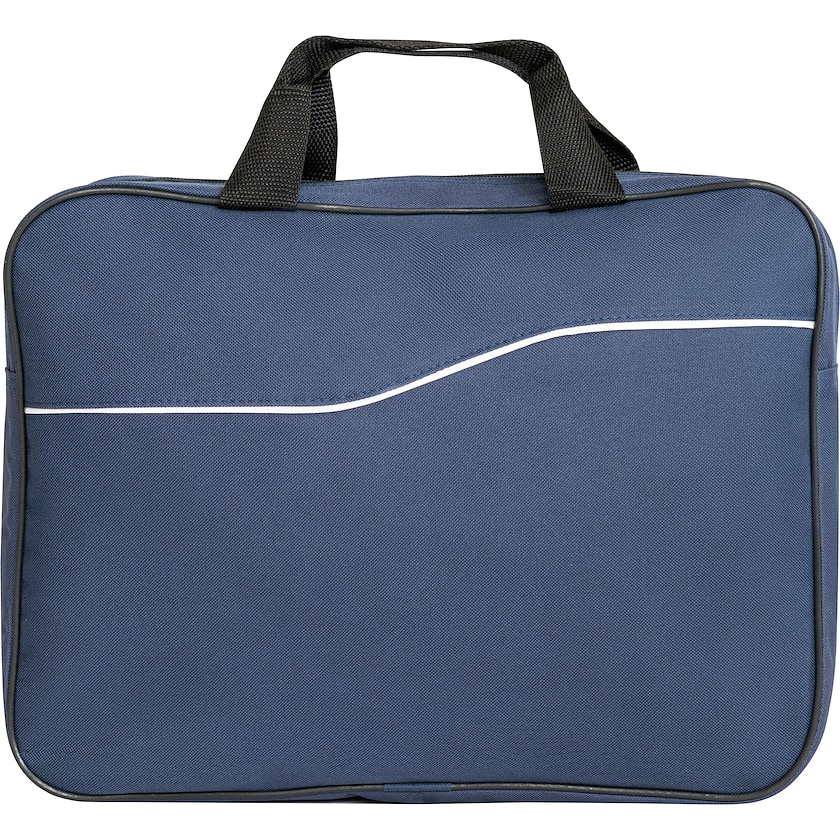 Sacoche porte-documents avec petites poignées à un prix attractif. Le porte-documents possède une bande décorative blanche sur le devant.