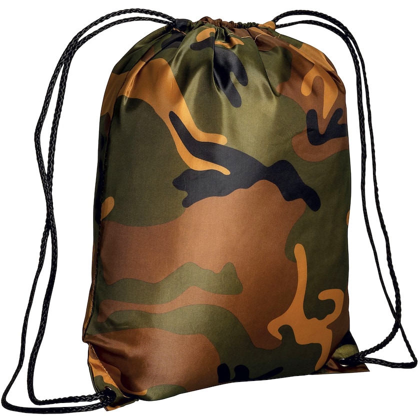 Sac de sport motif camouflage. Le sac de sport est en polyester résistant, avec des coins renforcés. La personnalisation est réalisée en deux couleurs maximum.