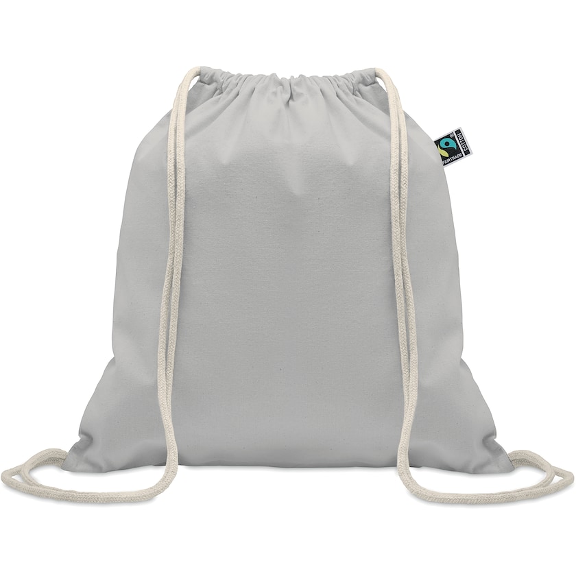 Sac de sport en coton certifié Fairtrade. Le tissu pèse 180 grammes et est entièrement composé de coton.