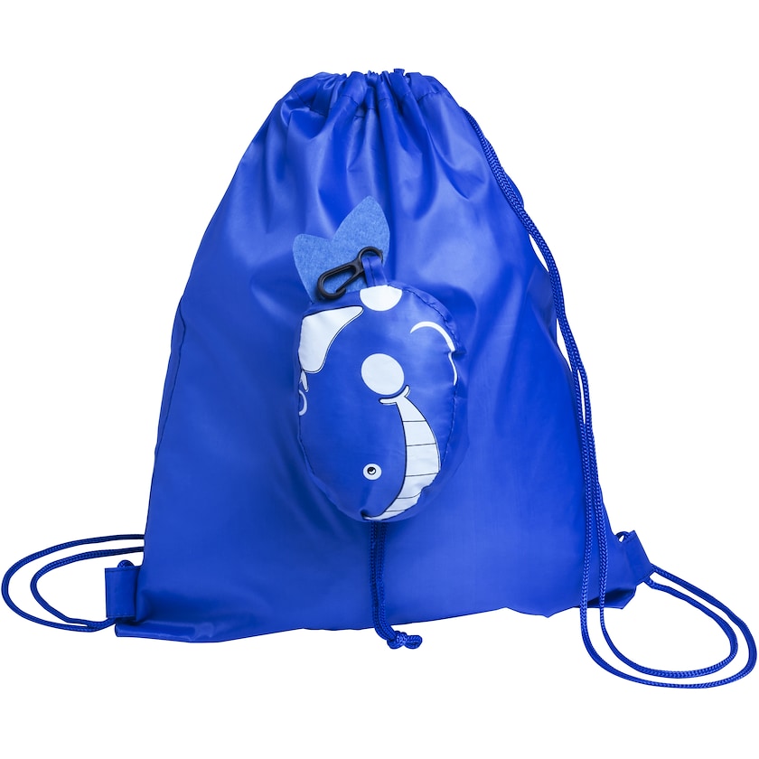 Sac de sport fun qui prend la forme d'un animal lorsqu'il est replié. Le sac de sport est équipé d'un mousqueton en plastique qui permet de l'accrocher facilement sur un sac à dos.