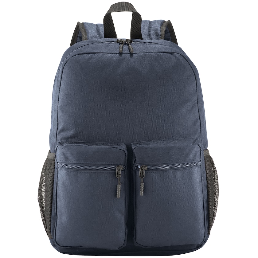 Grand sac à dos avec grosses poches sur le devant. Le sac possède des poches filet sur les côtés. La personnalisation est réalisée en trois couleurs maximum.