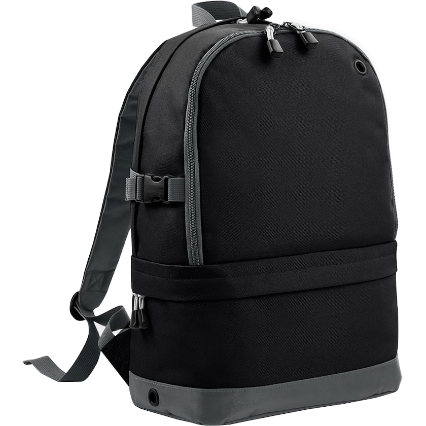 Sac à dos de haute qualité avec un compartiment matelassé pour ordinateur portable. Le sac à dos possède également une sortie pour écouteurs, un panneau arrière matelassé, des sangles de compression, un élastique pour une bouteille, une poignée et des bretelles matelassées réglables.