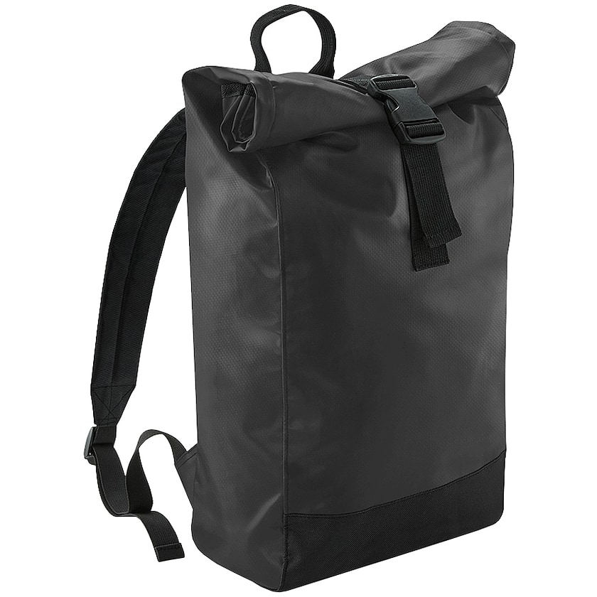 Sac à dos imperméable avec rabat roll-up. Le sac contient une poche cachée pour objets de valeur. Les bretelles sont matelassées. Uniquement avec impression 1 couleur en argenté. Un sac à dos moderne conçu pour une résistance maximale!