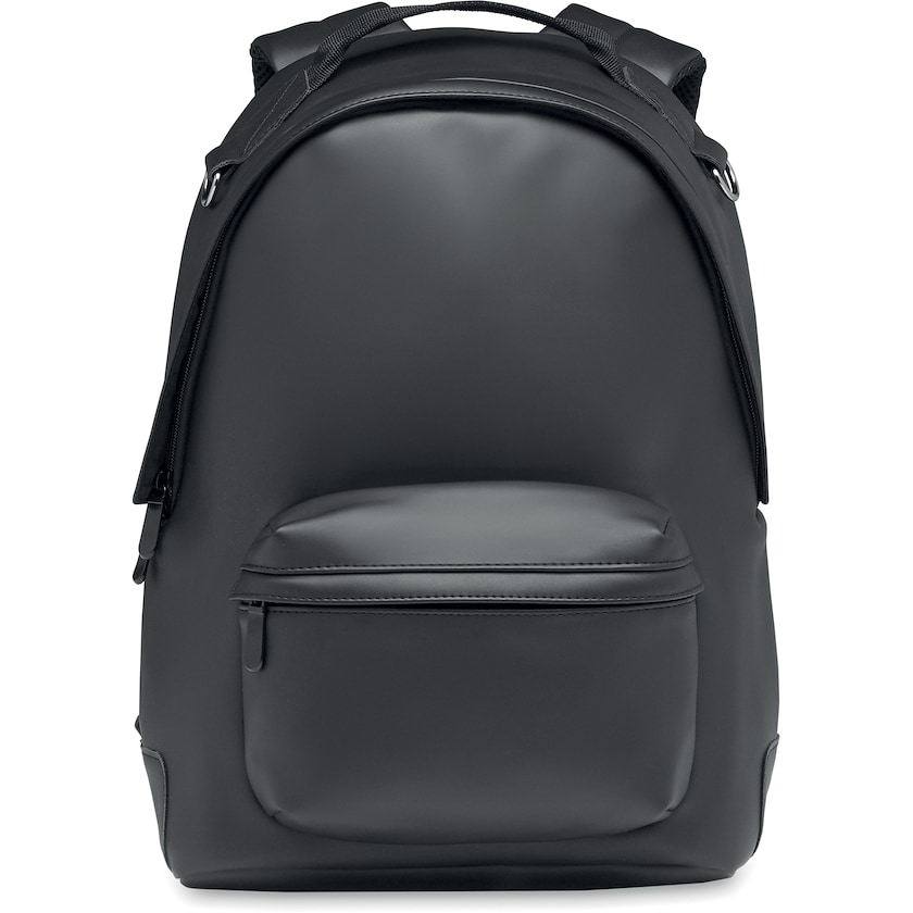 Sac à dos d'ordinateur en cuir artificiel. A l'intérieur se trouve un compartiment pour un ordinateur portable de 15 pouces. Le dos est rembourré et le bas est renforcé. La doublure est en rPET respectueux de l'environnement.