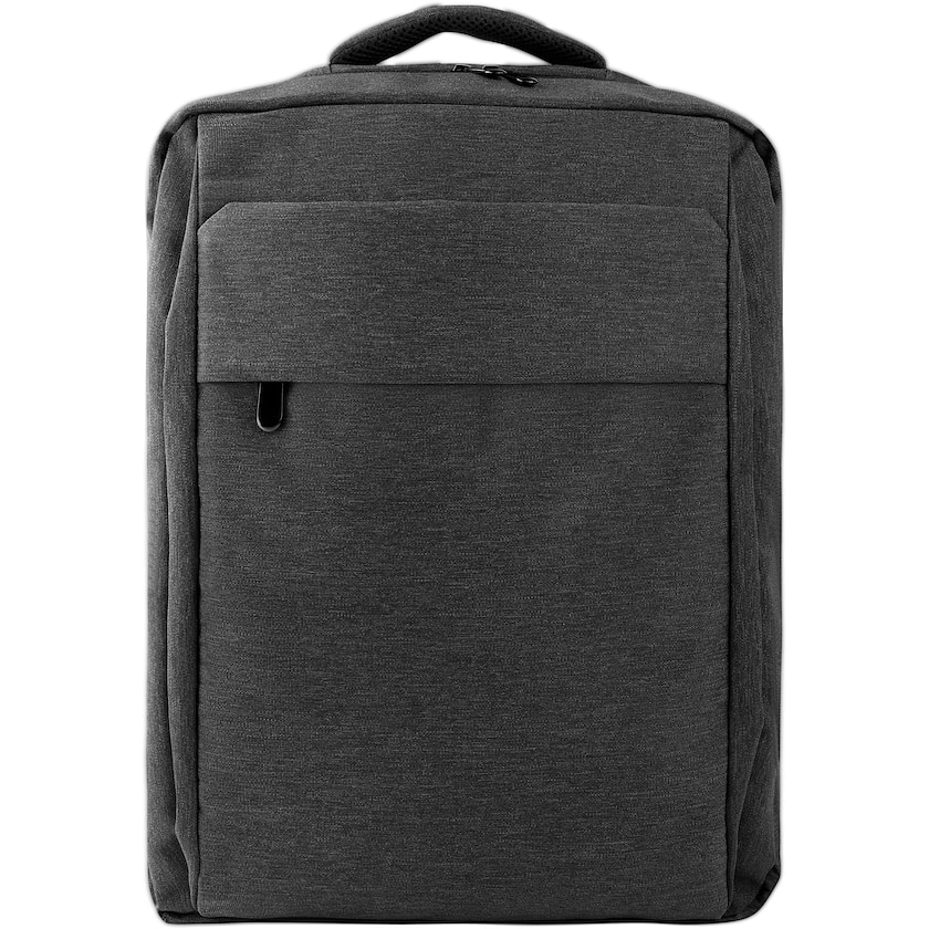 Sac à dos pour ordinateur en polyester recyclé. À l'intérieur, il y a un compartiment pour ordinateur portable de 15,6 pouces et plusieurs poches. À l'avant, une poche zippée et sur le côté, une poche pour bouteille d'eau. À l'arrière, une sangle pour trolley.