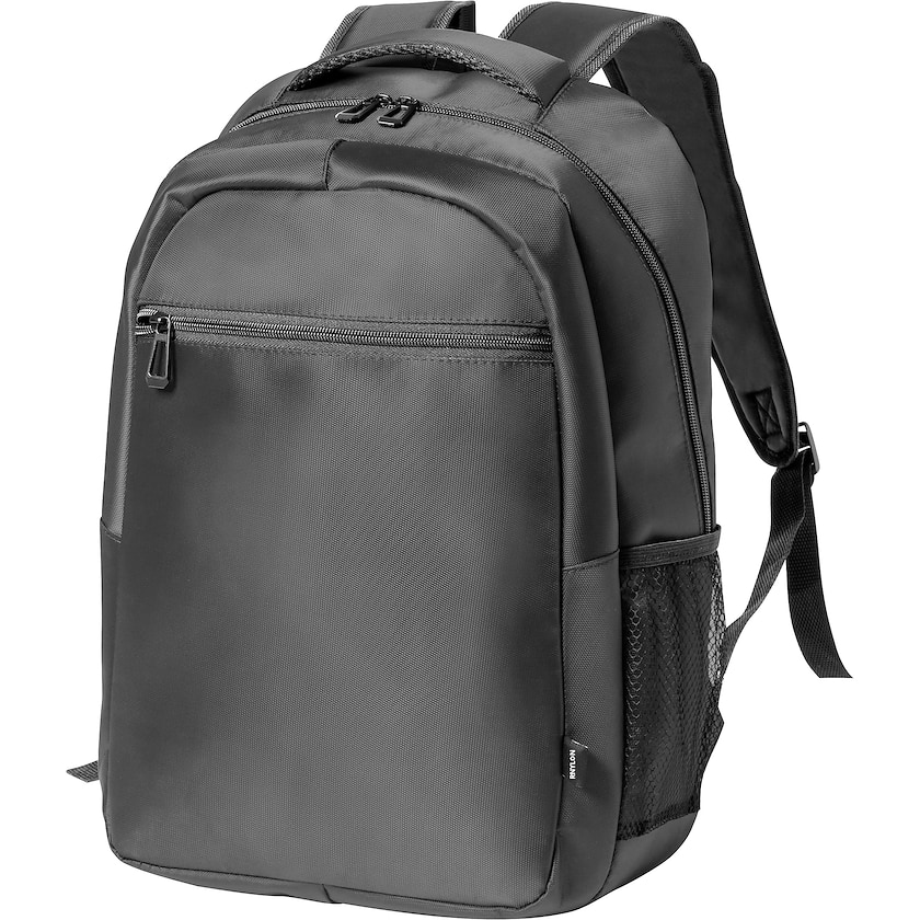 Sac à dos pour ordinateur avec impression en nylon recyclé. A l'intérieur se trouve un compartiment rembourré pour un ordinateur portable de 15 pouces. Une petite poche zippée se trouve à l'avant. Au dos se trouve une sangle pour attaché votre sac à un bagage roulant.