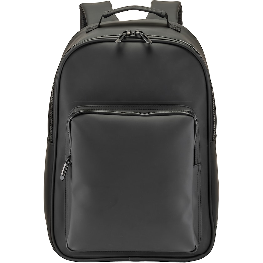 Sac à dos pour ordinateur avec tissu doux et résistant à l'eau. À l'intérieur, un compartiment rembourré peut accueillir un ordinateur portable de 15 pouces. À l'avant, une grande poche zippée. Le dos et les bretelles sont rembourrés et fabriqués dans un matériau respirant. Peut être fixé à un trolley.