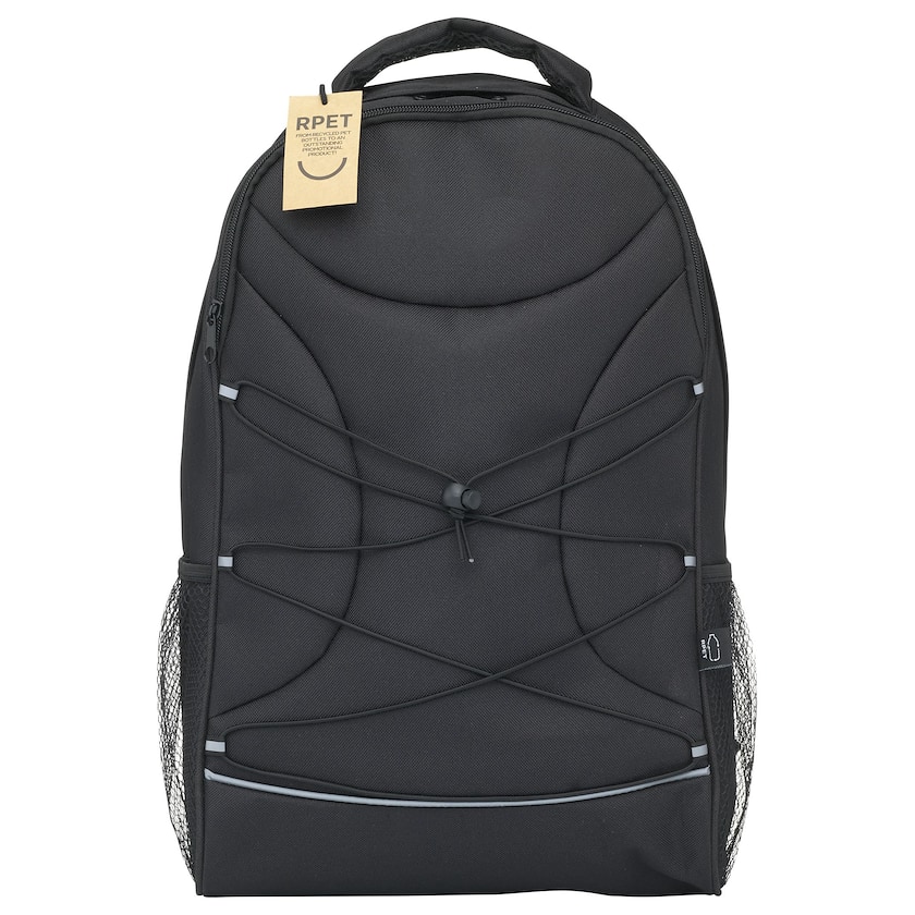 Sac à dos écologique pour ordinateur portable. Le sac à dos est en rPET (c'est-à-dire fabriqué à partir de bouteilles PET recyclées). À l'intérieur, un compartiment matelassé permet de ranger un ordinateur portable 15,6 pouces. Les bretelles et l'arrière sont confortablement matelassés. Personnalisation par impression monochrome uniquement.