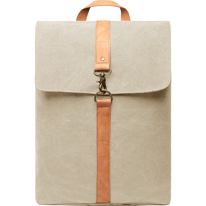 Élégant sac à dos pour ordinateur portable en toile canvas écologique. À l'intérieur, un compartiment matelassé permet de ranger un ordinateur portable 15 pouces. Le tissu est composé à 62% de coton recyclé et à 34% de coton standard. Le sac à dos possède de jolis détails en cuir synthétique et métal.