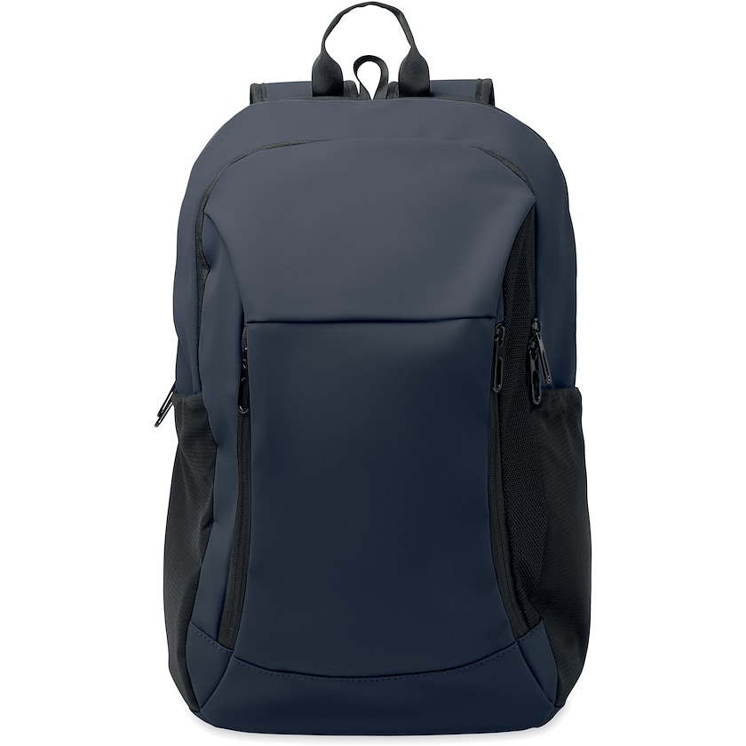 Sac à dos pour ordinateur en matériau souple. À l'intérieur, un compartiment pour ordinateur portable de 15 pouces est prévu. La fermeture éclair du compartiment principal est dissimulée, ce qui réduit les risques de vol. Des poches en filet sont présentes sur les côtés. Le dos et les bretelles sont rembourrés. L'impression en une seule couleur est possible.