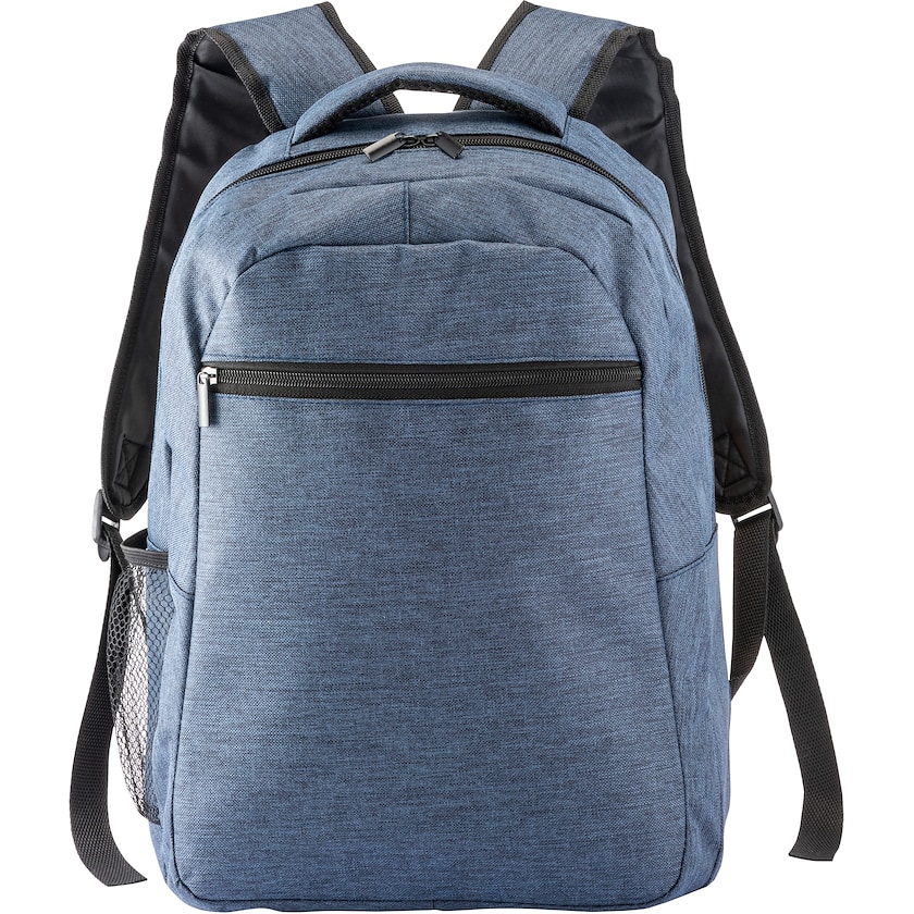 Sac à dos pour ordinateur portable dans un joli tissu chiné. À l'intérieur, un compartiment permet de ranger un ordinateur portable 15 pouces. L'arrière et les bretelles sont confortablement matelassés. Personnalisation par impression monochrome uniquement.