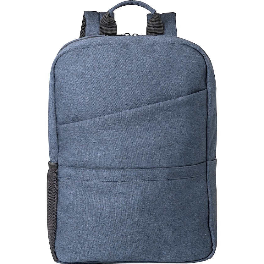 Sac à dos pour ordinateur portable en rPET. L'Indigo possède un compartiment matelassé qui convient à un ordinateur portable de 15,6 pouces, ainsi qu'un deuxième compartiment matelassé pour une tablette 10,5 pouces. Deux poches avant à fermeture éclair permettent de ranger de petits objets. L'un des côtés possède une poche filet. L'arrière et les bretelles sont confortablement matelassés.