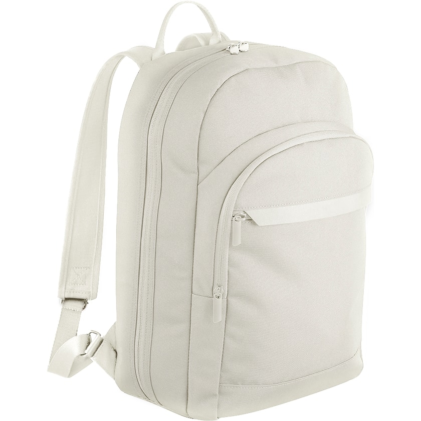 Sac à dos d'ordinateur au design minimaliste et de qualité supérieure. Ce sac à dos est fabriqué en polyester 600D 100 % recyclé. Il comprend une poche rembourrée pour ordinateur portable 13 pouces et des détails astucieux tels que des poches en filet et des porte-bouteilles.