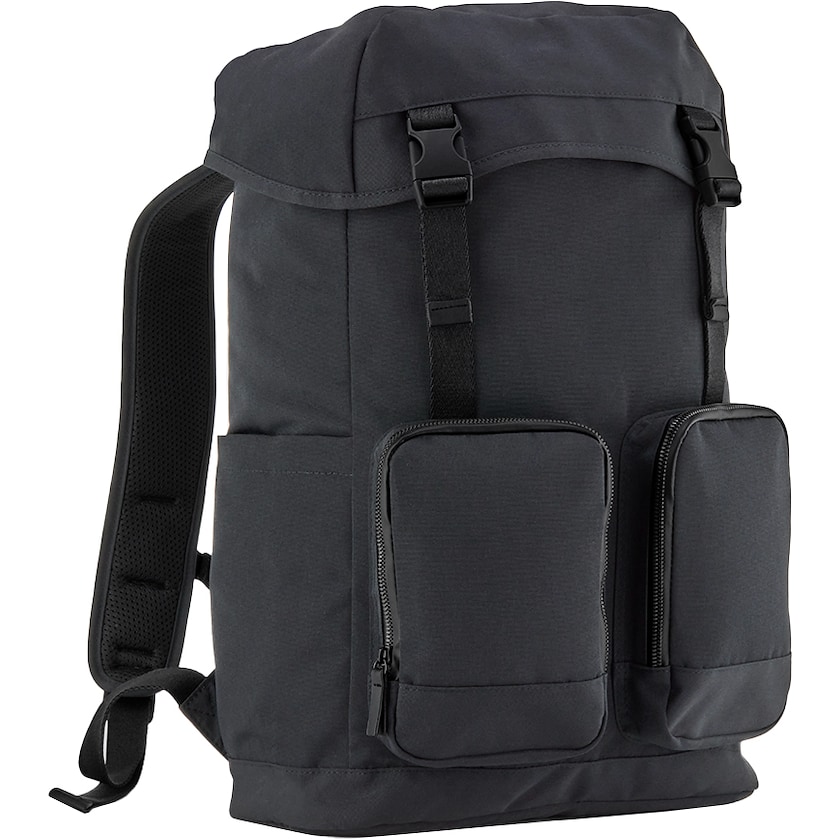 Sac d'ordinateur sportif en polyester recyclé. Le tissu est déperlant et composé à 100% de polyester certifié GRS. A l'intérieur se trouve une poche rembourrée pour un ordinateur portable de 16 pouces. Sur le devant se trouvent deux poches zippées et sur les côtés se trouvent des poches à fermeture magnétique. Au dos se trouve une poche cachée pour les objets de valeur.
