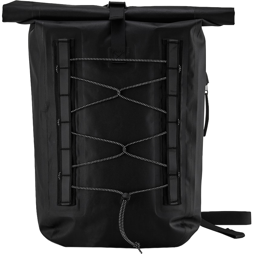 Sac à dos roll-top exclusif en tissu imperméable. Le compartiment principal est étanche. À l’intérieur se trouve un compartiment rembourré pour un ordinateur portable de 13,5 pouces. Le devant est doté de bandes réfléchissantes pour une visibilité accrue dans l'obscurité. D'un côté il y a une poche zippée.