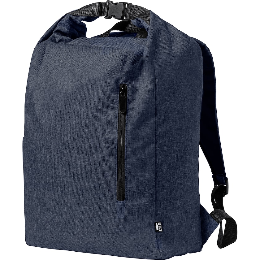 Sac à dos roll-top résistant à l'eau. Le sac à dos est fabriqué en PETr, un matériau respectueux de l'environnement. Le dos et les bretelles sont confortablement rembourrés.