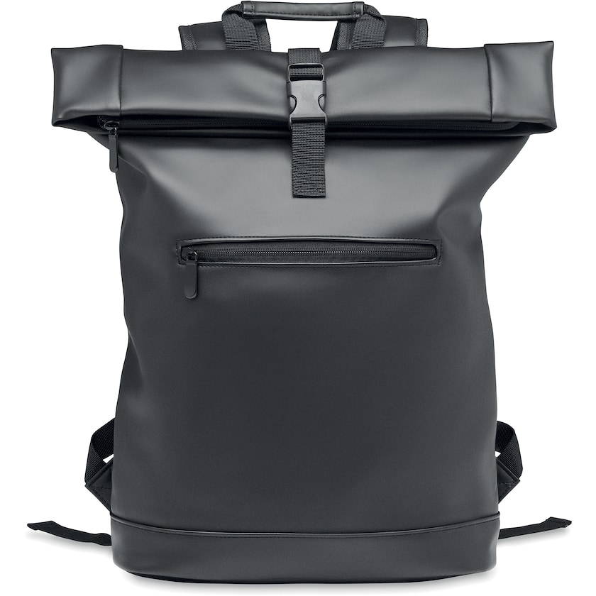 Sac à dos à roulettes en matériau souple. A l'intérieur se trouve un compartiment pour un ordinateur portable de 15 pouces. Le dos est confortablement rembourré et le bas renforcé pour une durabilité accrue. La doublure est en rPET respectueux de l'environnement. Seule une impression en 1 couleur est possible.