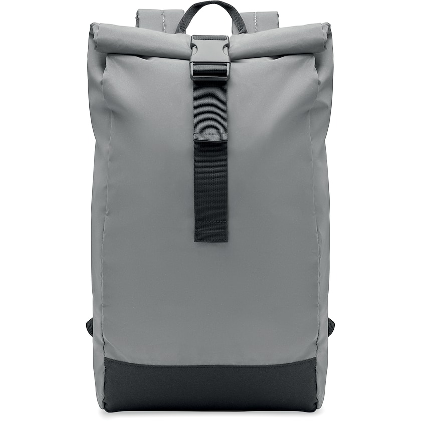 Sac à dos Roll-Top avec tissu hautement réfléchissant. Le dos, les bretelles et le fond sont rembourrés. Une poche de rangement zippée se trouve sur le devant. Seule l'impression en une couleur est possible.