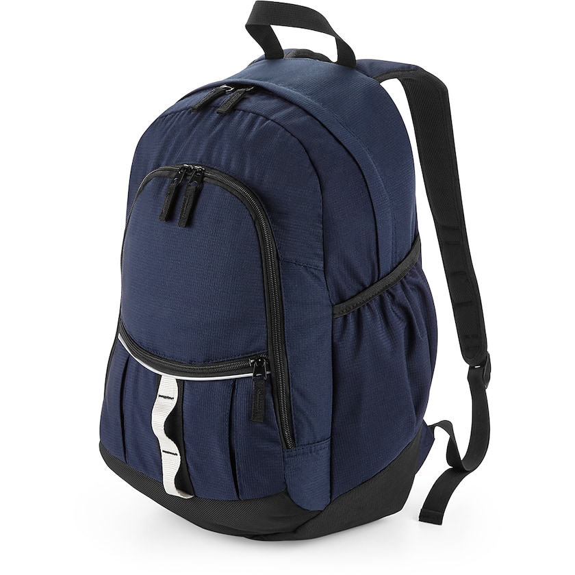 Sac à dos de haute qualité avec bande réfléchissante sur le devant. Les bretelles sont matelassées et l'arrière est ergonomique. Sur les côtés, des poches permettent de ranger des bouteilles d'eau par exemple.