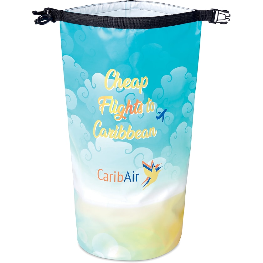 Sac marin étanche personnalisable sur toute sa surface. Le sac marin est fabriqué en PVC 0.5 mm et est entièrement étanche. Il est équipé d'une sangle réglable. Téléchargez le template d'impression et créez un sac marin au design unique et personnalisé ! Le sac marin étant fabriqué sur commande, les délais de livraison sont un peu plus longs que d'habitude. La quantité minimum de commande est de 150 unités.