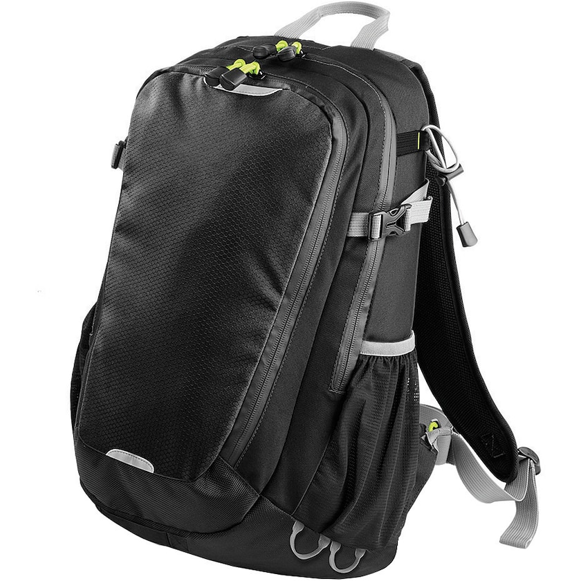 Grand sac à dos de randonnée robuste. Le sac à dos possède des sangles réglables matelassées à la poitrine et la taille. L'arrière est ergonomique pour un confort de première classe. Le sac à dos possède des détails malins comme des poches à filet sur les côtés, des poches latérales ainsi qu'une poche avant à fermeture éclair et une poche à filet intérieure pour les objets de valeur.