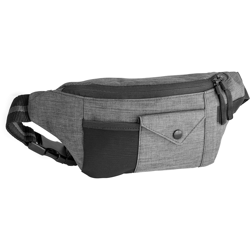 Sac banane avec de nombreuses poches. Le compartiment principal est équipé d'une fermeture éclair. À l'intérieur se trouve également une poche filet, et sur le devant, deux petites poches. À l'arrière du sac banane, une poche permet de ranger des objets de valeur.