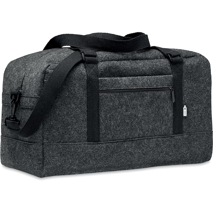 Sac de sport écologique en feutre. Le tissu est fabriqué en bouteilles PET recyclées (c'est-à-dire en rPET). Il est équipé d'une petite poche de sécurité sur le devant. La bandoulière est amovible et ajustable.