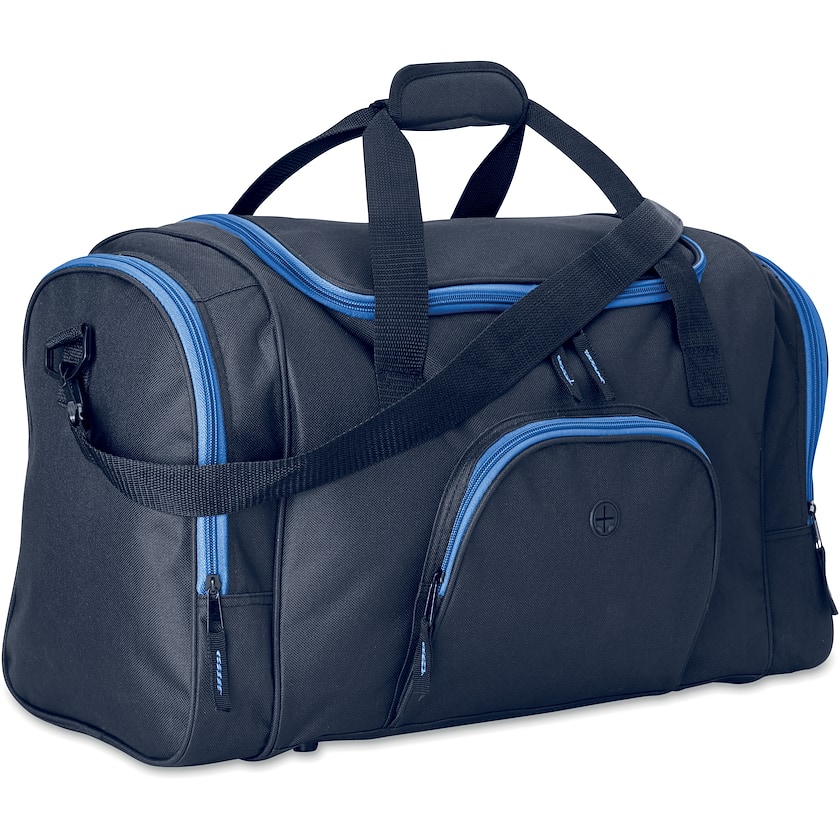Sac de sport haut de gamme avec plusieurs compartiments pratiques. Le sac possède des poches à fermeture éclair de chaque côté, ainsi qu'un compartiment à fermeture éclair sur le devant, également pourvu d'une sortie pour écouteurs. La bandoulière du sac est ajustable et amovible.