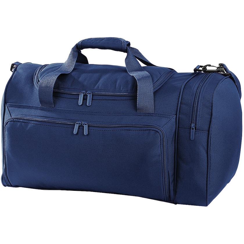 Sac de sport de haute qualité avec de beaux détails. Sur l'un des côtés courts du sac se trouve une grande poche de rangement à fermeture éclair, et une autre sur le devant du sac. Les bretelles sont matelassées et amovibles. Le sac possède un fond renforcé pour une meilleure rigidité. Des pieds protègent le dessous de l'usure.