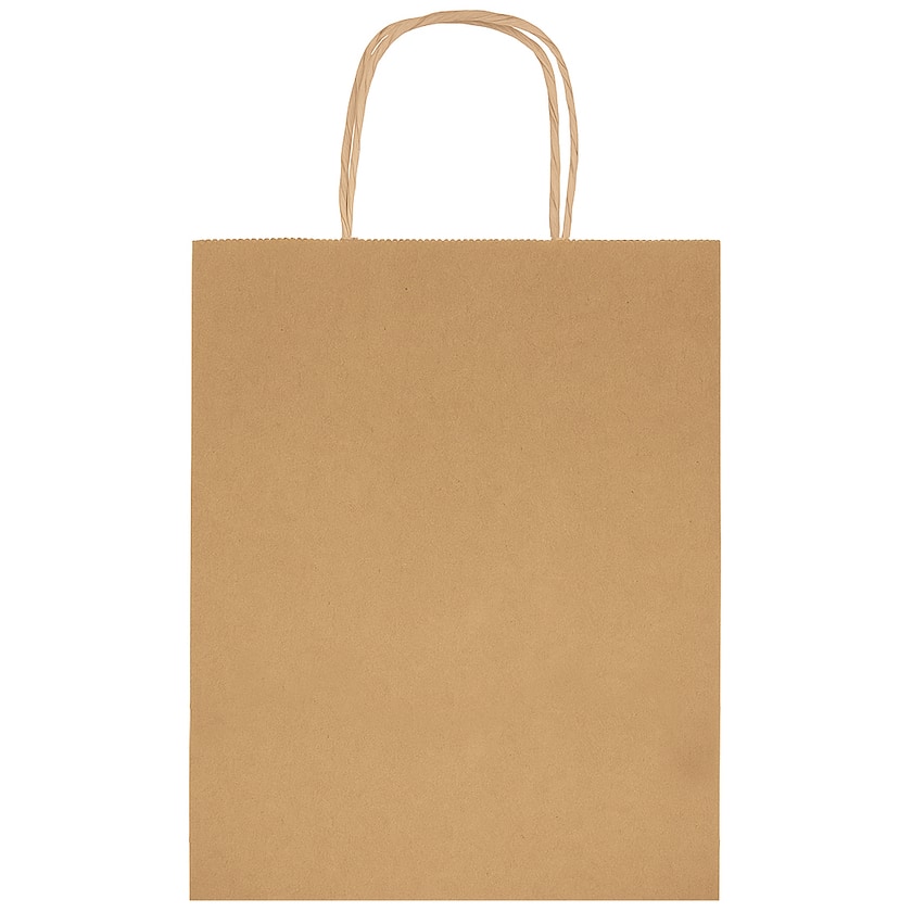 Petit sac en papier de couleur naturelle, fabriqué à partir de papier recyclé. Les poignées sont renforcées. Le carton supporte un poids maximal de 4 kg. Grâce à l'impression numérique, le délai de livraison est court.