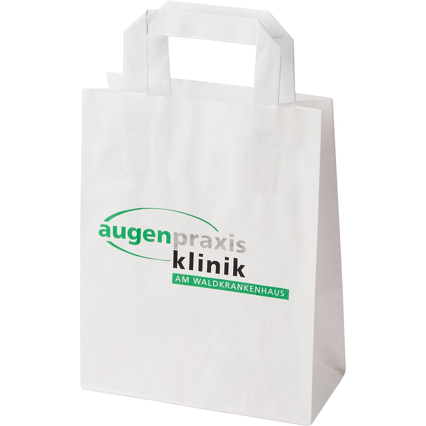 Petit sachet en papier avec anses plates. Le sachet est fabriqué en papier lisse. Le prix d'impression fait référence à l'impression sur l'un des côtés.