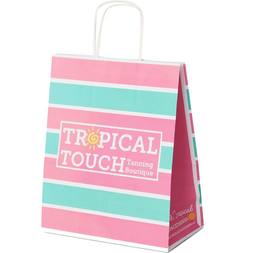 Petit sac en papier dont toute la surface est personnalisable. Le sac en papier est fabriqué à partir de papier de 100 grammes d'épaisseur, avec des anses torsadées. La personnalisation est réalisée sur tous les côtés du sac. Téléchargez le template d'impression et concevez votre propre sac en papier ! La quantité minimale est de 3000 unités. La production peut donner lieu à un nombre correspondant à +/15% de la commande. La quantité effectivement produite sera celle facturée.