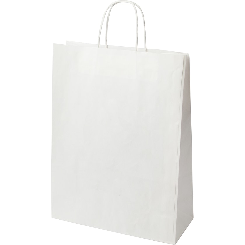 Grand sac en papier avec anses en papier torsadées. Peut résister à un poids jusqu'à 15 kg. Le prix de l'impression fait référence à l'impression sur un des côtés. Un sac parfait pour votre magasin!