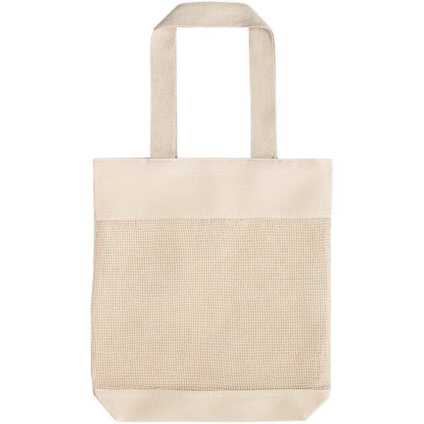 Sac en coton personnalisé avec filet sur le devant. Le Brodie est fabriqué en coton 180 et possède des anses de 65 cm. Un sac en coton parfait pour les courses !