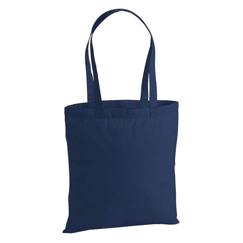 Sac en tissu de haute qualité en toile de coton de 200 grammes. Les anses ont une longueur qui permet de porter le sac aussi bien en main qu'à l'épaule. Les anses font 67 cm de long.
