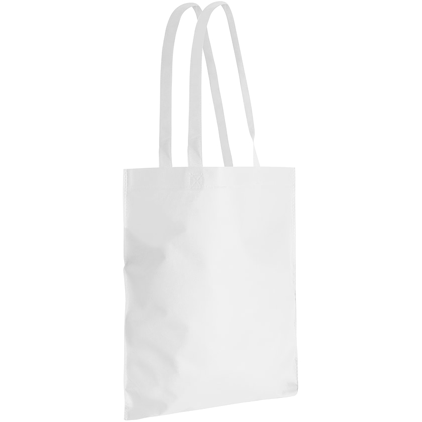 Sac non tissé personnalisé économique. Le sac possède de longues anses thermo-scellées. Le meilleur choix pour vous qui recherchez des sacs tissu vraiment pas chers pour les salons ou les événements. Personnalisable à partir de seulement 50 unités.