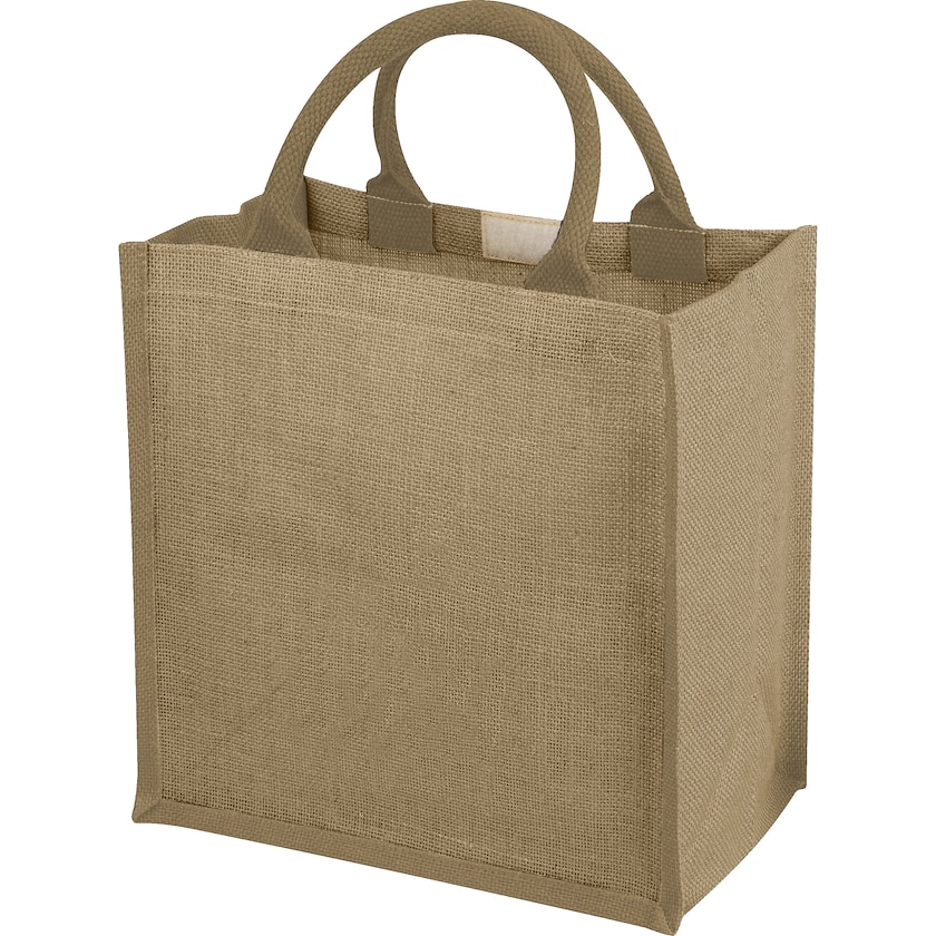 Grand sac en jute laminé. La poignée est en coton. Grâce à son laminage, ce sac en jute est extra résistant. Uniquement avec impression 1 couleur.