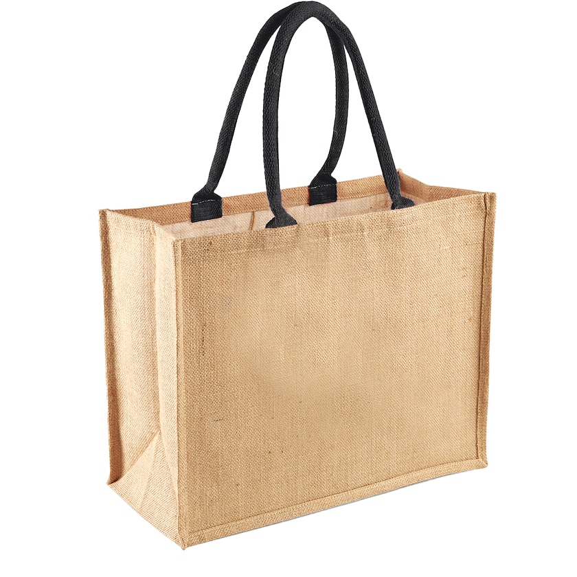 Grand sac en tissu dans une toile de jute et poignée en coton. Dans le cas où plusieurs couleurs doivent être imprimées, elles ne pourront pas se toucher.