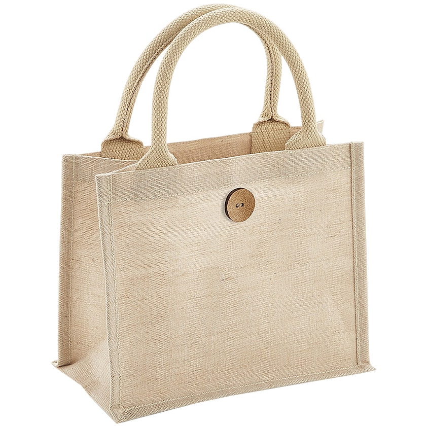 Petit sac à provisions en matériaux naturels. Le Montagu est fait dans un tissu laminé de haute qualité composé à 72% de toile de jute et 28% de coton. Les poignées sont 100% coton. Un petit sac en jute de la plus haute qualité!