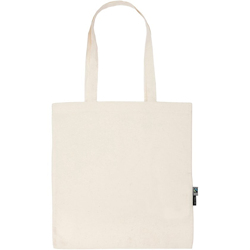 Sac en tissu de couleur nature fabriqué en coton écologique certifié Fairtrade. Les poignées mesurent 66 cm de long. Le modèle est également disponible avec des poignées courtes. Certifié Fairtrade, EU Ecolabel, SA8000 et Oeko-tex.Commandez vos sacs en tissu écologiques personnalisés chez Axon Profil!